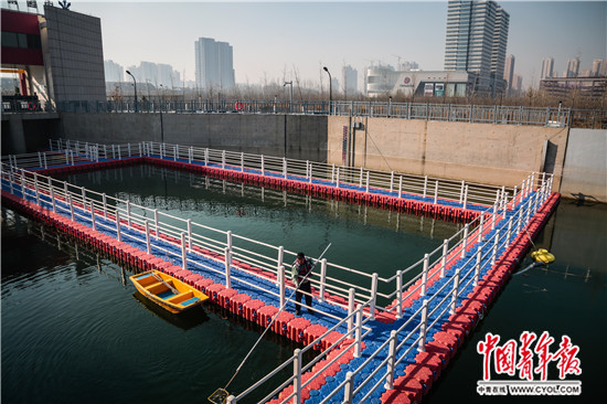 11月24日,天津,南水北调中线工程天津段外环出口闸,一名工作人员在工作。南水北调中线一期工程自2014年12月12日通水以来,累计调引南水60.9亿立方米,惠及北京、天津、河南、河北四省市4200万人。