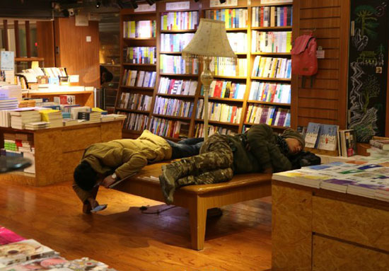 书店工作人员说,在这过夜的很多是拾荒者和无家可归的流浪者,也有离家出走的人和在自习的学生,书店从来不驱赶任何人。