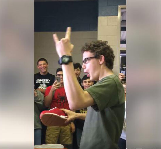 马上就要放圣诞假了,在美国得克萨斯州的默赛特中学,高二学生J.R. Gilbert被同学叫进了一间教室。进去才发现,几乎所有同学都在这里,围在一张桌子前,桌上有张纸,写着“Merry Christmas,JR!(圣诞节快乐JR)”,而圣诞礼物是一双新的运动鞋,等等,还有一双!