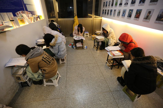 12月20日,安徽安庆,安庆师范大学图书馆、自习室、走廊、楼梯等地都有很多正在全力备考的学生。2017年全国硕士研究生招生考试将于12月24日开考,“考研族”抓紧最后复习时间。视觉中国供图