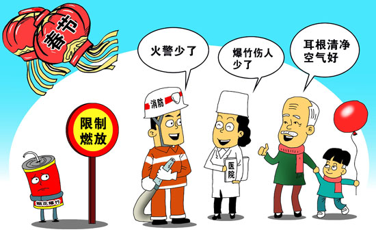 春节期间,中国青年报社社会调查中心联合问卷网,对2002人进行的一项调查显示,与往年相比,50.3%的受访者感到今年春节家乡燃放烟花爆竹的少了,61.6%的受访者认为少放烟花爆竹是人们的环保意识提高了。