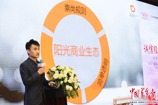 近年来,我国掀起了以互联网为主导的新经济潮流,但互联网平台的虚拟性,也带来了电商领域的青年诚信问题。刘计划来自中国人民大学刑事法律科学研究中心,作为阳光诚信联盟顾问单位代表上台致辞时说:“失去诚信的社会,每一个成员都会成为受害者,失去诚信人人自危,最终没有赢家。”