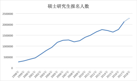 不久前,中国教育在线联合微博教育发布的《2018年全国研究生招生数据调查报告》(以下简称《报告》)显示,2017年在职研究生首次纳入统考,致考研报名人数大增,达到201万人,增幅超过13%,已连续两年上涨。从2018年的各省数据看,研究生报名人数继续高涨。考生中,往届生报名增幅超过应届生。