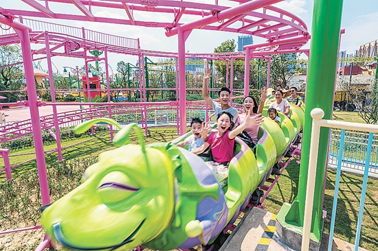 这里有象征群英荟萃的双层旋木、有大气张扬的弹跳机鼓乐飞车、有模拟贵妃醉酒之态而设的转转杯、还有哪吒的宝物“风火飞轮”和大圣的绝活“筋斗云霄”。就连区域内的商店、餐厅也透着浓郁的国粹风情。