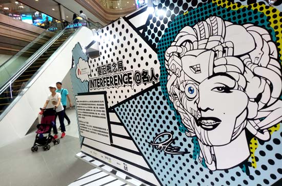 5月13日,上海南京路一大型商场中厅,加拿大艺术家Pat Lee创作的基因概念展首次亮相展出,吸引不少观众好奇的目光。展览以极具美漫风格的展陈设计融合Interference艺术创作形象,以雕塑、装置、立体造型等形式在空间中营造出不同的维度,让参观者走入其中感受二次元艺术魅力。视觉中国供图