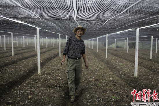 7月20日,云南省丽江市玉龙纳西族自治县鲁甸乡,暴雨,50岁的药农杨继勇在自己的药田里。中国青年报·中青在线记者 赵迪/摄