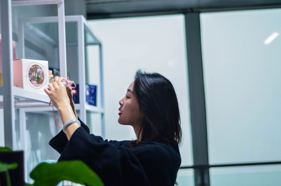 12月1日,安徽芜湖,90后女青年邢星辞去稳定安逸的银行工作,创业做起了喜礼。对此许多人不理解:在银行工作既体面又稳定,为什么和朋友一起合伙投资数十万创业?她说,创业能见证和传递幸福,虽然现在不挣钱但是会坚持下去。视觉中国供图