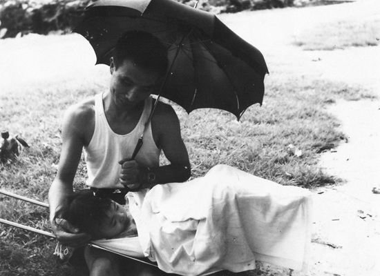 1981年,上海长风公园,回沪探亲的姥爷为睡着的小姨披上外套、打伞遮阳。1962年,姥爷到北京工作,远离上海的亲人。1981年国家出台了探亲假政策,姥爷才第一次与自己两岁的小侄女、我的小姨见上了面。现在姥爷学会了微信聊天,去年侄孙女在上海出生,他第一时间在手机上看到了孩子的照片。(宋欣然)