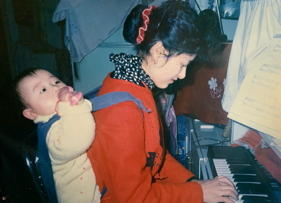 上世纪90年代初,妈妈背着年幼的我练琴。我妈从小喜欢音乐,但当时家庭条件不支持,生下我后便每天给我放音乐。抓周时她特意将电子琴放在我面前,我到底抓了什么她却不愿意说了。5岁时,妈妈给我报班学琴,我没能坚持下来。大概每个孩子的童年都会帮父母尝试几个他们的梦想吧。(大宝)