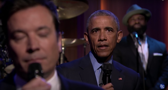 事实证明,歌曲的旋律把现场所有人连在了一起,这比义正严辞的演说更能烘托气氛,同时也为各个视频网站贡献了不少点击率。如此看来,美国人民也不只想看总统在演讲台上侃侃而谈,或是正襟危坐地签署文件,他们还关心他爱听爱唱的歌曲,关心屏幕之外那个日常生活里的总统。