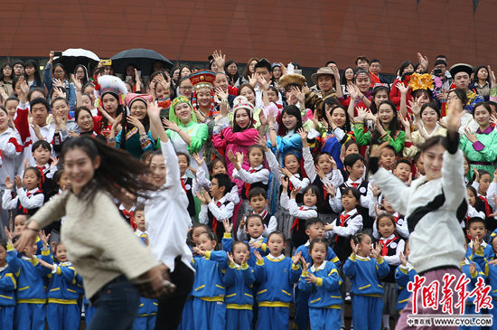 3月20日,北京清华大学新清华学堂前,来自首都部分学校的学生们进行《我们的祖国是花园》快闪表演。当日,北京市教育系统庆祝新中国成立70周年“我和我的祖国”爱国主义主题教育活动在这里拉开序幕。中国青年报·中青在线记者 陈剑/摄