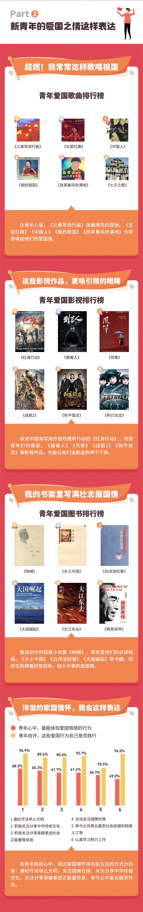 百年前的学生群体,为了祖国,奉献自己的一腔热血。那么,在五四百年后的今天,这届青年通过什么方式来表达洋溢的家国情怀?据白皮书数据显示,96%的青年通过“认真学习、努力工作”,在日常生活中传递着爱国情。