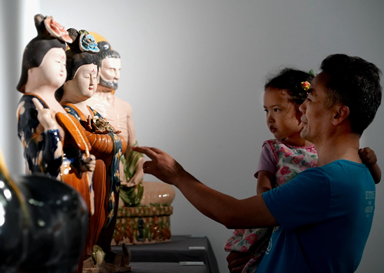 9月1日,参观者在“洛阳三彩艺术作品巡展”首展上观看展品。当日,“洛阳三彩艺术作品巡展”首展在位于郑州的河南博物院开展,300件展品集中亮相。新华社记者 李安/摄
