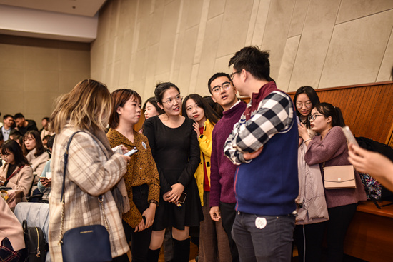 11月17日晚,北京,一场共有400名北京高校研究生参加的联谊活动在清华大学校园内举行,学生们在现场交谈“破冰”。一天前北京发布了寒潮蓝色预警,活动当晚最高风力达8级,仍然没能阻挡学生参与活动的热情。此次活动主办方表示,联谊活动主要为了给课业繁重的学生提供交友途径,“主要交友,脱单随缘”。实习生 宋欣然/摄