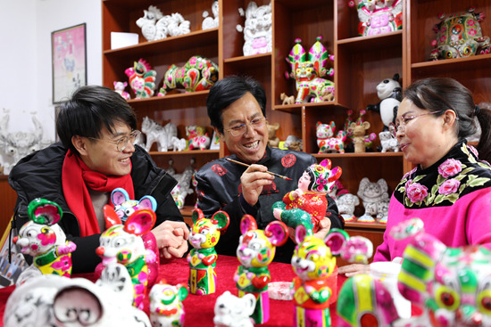 农历鼠年临近,中国泥塑之乡陕西凤翔县六营村的民间艺人们赶制泥塑,迎接新年。新华社记者 都红刚/摄