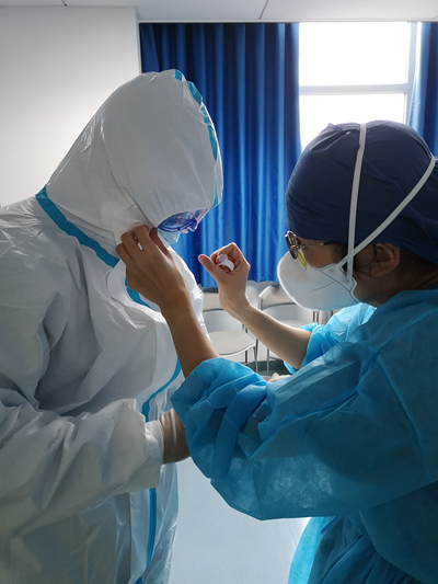 控制感染是传染病救治工作的重中之重,每支医疗队都配备了控感专业的专家组织研究控感方案,制定流程,确保医护人员自身的安全。