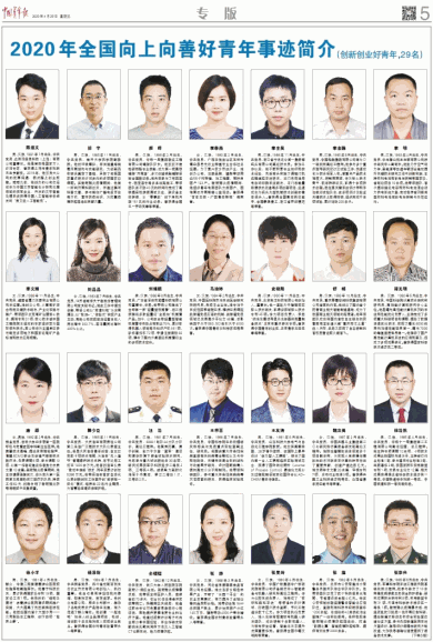 2020年全国向上向善好青年事迹简介(创新创业好青年,29名)