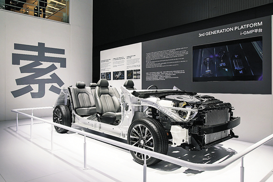 在车型设计上,第三代平台(i-GMP平台)对发动机舱和座舱进行了设计优化。其核心技术使车辆重心更低、轴距更长,让用户获得宽敞的内部空间。安全性上,平台通过采用超高张力钢材和热冲压工艺、多重骨架结构发动机舱技术以及移动控制技术,最大限度地提升了乘客安全区域的强度,成功打造了业内较高水平的全方位碰撞安全性能。操控方面第三代平台(i-GMP平台)采用科学的车身重量配置,使车辆底盘更加紧致,让车辆可在多种环境下实现稳定驾驶。