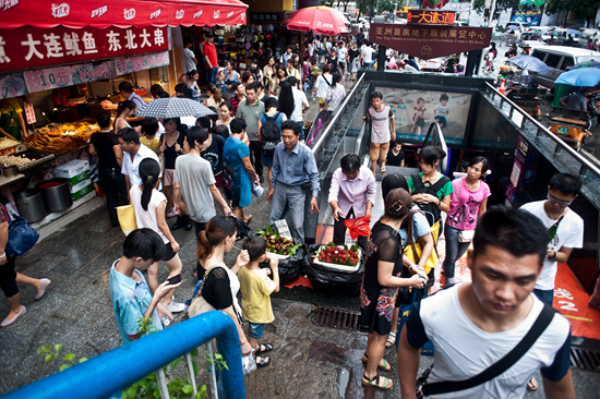 流动商贩齐聚在热闹街市,也出没在城中村的市井之中。员村曾经是广州的轻工业重镇,遗留下大片城中村。这里基础设施完善,生活配套便利,居住成本低,成为很多青年的栖息地。夜幕降临,沿着员村二横路往南到珠江边各色小摊一字排开,夹杂着各地口音的人们举着啤酒瓶,在烟雾缭绕中推杯换盏。