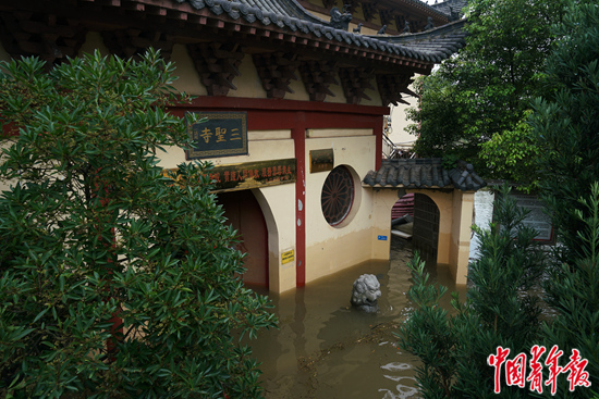 岛上有农户家的三只羊,被淹死了。近年来小岛上用于发展旅游业的油菜花与芍药园,也都被淹,就连小岛上供奉海神“妈祖”的天后宫也难逃一劫。