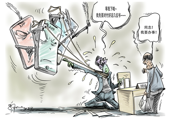 一人照管60个“小号”、3部手机随时连着充电宝、上厕所开会都不忘“刷分”……这不是淘宝大V在卖货,而是社区工作者在应付各种形式化考核。记者走访多个社区发现,这样的情况并非个案,3到5部手机已是社区工作者的标配。好几位基层工作者表示,晚上上了床,不在脑子里过一遍今天要打的卡就很难睡着。(半月谈网8月3日)漫画:徐简