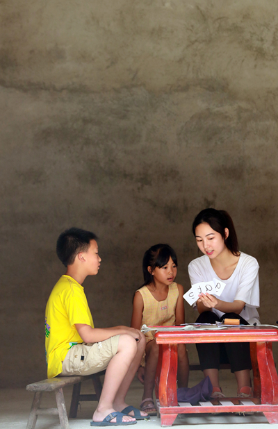 7月26日,是桂林旅游学院放暑假的第一天,支教的师生们又一次来到中峰村,通过做游戏和走村入户的方式,教山区孩子们英语。这也成为了当地孩子们2020年暑假的“特殊第一课”。2018年3月,桂林旅游学院在扶贫中获知,桂林市资源县中峰镇中峰村的孩子们英语基础薄弱,该校外国语学院挑选出一批品学兼优的英语专业大学生和英语教师,组建了英语支教队伍,利用假期和课余时间,经常深入山村进行英语教学,让高校教师指导小学教师,让大学生教小学生,并量身订制了零基础班、初级班、中级班以及高级班,因材施教。视觉中国供图