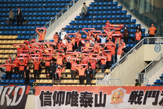 2020年,中国足球超级联赛在疫情下缩减规模,入场球迷数量被大幅度限制,赛区还分成了绿区和蓝区,不能相互走动。好在略显空旷的看台,似乎也没有影响球迷和球员的激情。