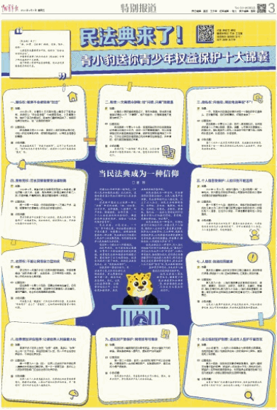 当民法典成为一种信仰,则人性化的细致呵护赋予法律温度。让“最优化”原则成为未成年人的“护身符”,从胎儿享有继承、接受赠与权利,到收养应当遵循最有利于被收养人的原则,特别是当因发生突发事件等紧急情况,使未成年人处于监护“真空”时,民法典新增临时监护等多种形式,为未成年人健康成长织起细密的保护网。