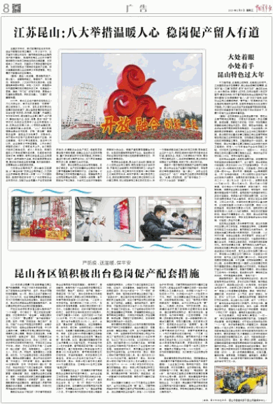 《措施》提出八条举措,围绕稳岗促产、暖心留人,涵盖稳岗留工、稳增促产、用工调剂、商贸保供、人文关怀和优化服务等。这些措施具有昆山特色、体现人文关怀,既是昆山市巩固疫情防控成果的务实之举,也是奋战一季度、确保“开门红”的有效手段,更是全力构建新发展格局、积极主动融入“双循环”的重要举措。