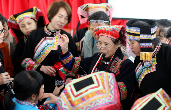 3月24日,在湖南郴州资兴市唐洞街道茶坪瑶族村,国家级非遗文化传承人邓菊花(中)正在为学员们传授瑶族刺绣技能。当日,资兴市“一户一产业工人”培养工程瑶族刺绣技能提升培训班在唐洞街道茶坪瑶族村开班, 多位居民参加此次培训。据悉,培训旨在提高农村劳动力创业就业能力,弘扬瑶族优秀传统文化,助推乡村振兴。 李科/视觉中国