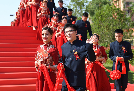 当日,中铁四局在安徽合肥为百对新人举办集体婚礼。据悉,参加集体婚礼的职工大多是中铁四局各建设单位一线的年轻骨干,他们常年奔波在生产一线,有的婚期一拖再拖。隆重而简朴的集体婚礼,既倡导了婚事新办,又让新人们感受到集体的关怀。新华社记者 刘军喜/摄