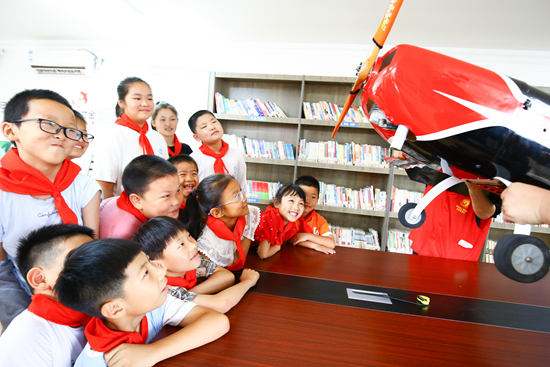 当日,科普老师走进立新社区农家书屋开展“暑期航模科普小课堂”活动。通过航模展示、航模知识交流,培养乡村学生对航空航天科技的兴趣,丰富暑期生活。徐慧/视觉中国