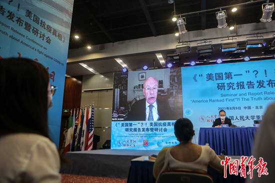 8月9日,北京,在“美国抗疫真相”主题研讨会环节,英国剑桥大学前高级研究员马丁·雅克通过在线视频形式分享了他的观点。