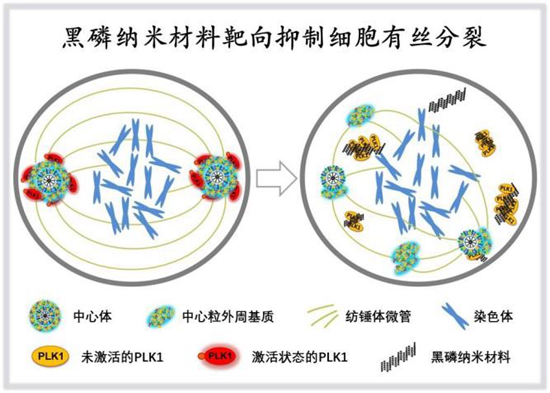 邵喜明说,研究团队首先使用低浓度黑磷纳米材料处理细胞,发现黑磷导致细胞周期停滞在有丝分裂期。随后,团队对这一现象背后的机理进行了深入挖掘,发现黑磷破坏了细胞有丝分裂核心机器——纺锤体的组装。这一机制被最终确定为黑磷导致细胞分裂停滞的直接原因。