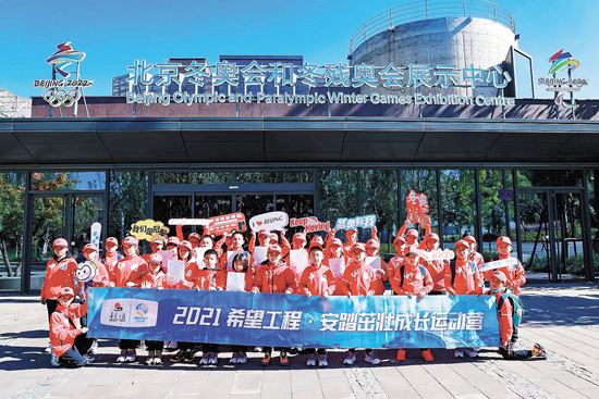 帮一群孩子们圆梦的活动叫“2021希望工程·安踏茁壮成长运动营”。为喜迎冬奥,10月20日至24日,中国青少年发展基金会联合安踏集团邀请了54名师生相聚北京,共同参与主题为“冬奥有我”的旅程。