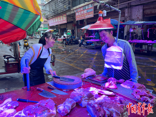 猪肉铺会在中午闭店4个小时。他们要开车返回10公里外的农村老家,和父母吃顿午饭,再陪一会儿1岁零8个月的儿子。廖立峰也可以补两个小时觉。