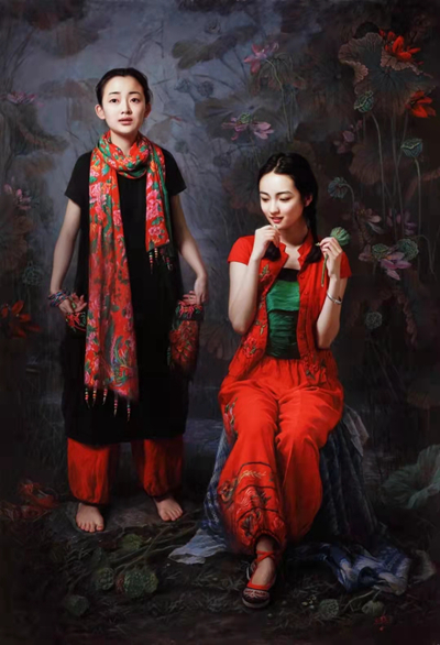 对于这一创作偏爱,安静解释说,女性画家画女性其实画的是自己。与男性画家相比,女性画家在创作女性形象时更多是由内而外地进行情绪抒发,这种创作带着自身生活的记忆与感受,是一种发自内心的诉说。“也许画的形象不是我,但是她们的内心就是我,她们的经历也是我自己的成长经历。在我十五六岁的时候,也会有那种青春期的萌动,也有考学的压力。我在农村生活过十几年,农村的女孩子喜欢的东西我都知道,我会经常跟她们交流。她们纳鞋底,她们搓麻绳,她们剥莲子,这些都是我曾经历过的生活。我把她们画了下来,形成乡情民俗系列,就是为了展现农村女孩子的质朴,以及她们对未来生活的美好向往。而作为女性,我也可以更多地从内心去感受女性,去表现好女性。”