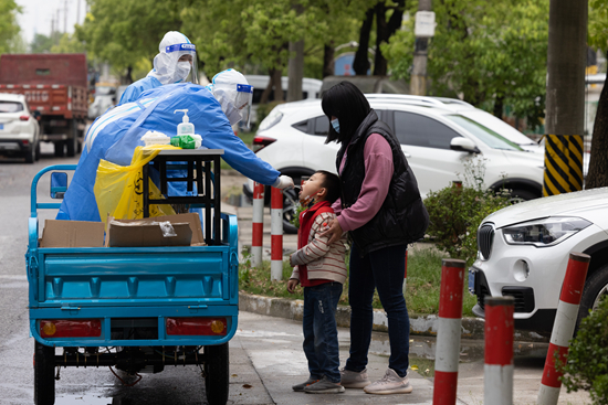 杨桥村是一个“城中村”,外来住户多。北蔡镇是此轮上海疫情的“风暴眼”。来自东方医院的医生在村里志愿者的帮助下,采取“村民不动医生动”的核酸采样方法,减少交叉感染,加快采样速度。新华社记者 金立旺/摄
