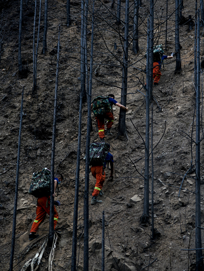 我跟着普巴多吉几个战友决定上山,把牺牲的蔡茂强和跑出来的战友们掉在火场上的东西拿回来,带到汶川。