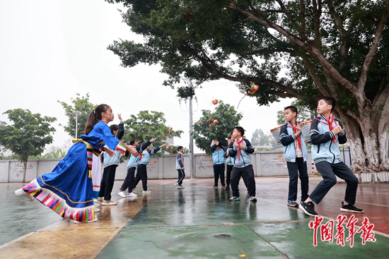 今年3月,广西壮族自治区民宗委、共青团广西区委、自治区教育厅联合印发《在全区青少年中开展铸牢中华民族共同体意识示范创建活动的实施方案》。示范建设活动开展以来,广西共青团组织发挥希望工程品牌优势,强化“公益资助+政府配套+志愿者参与”新时代希望工程资助体系,支持全区30所希望小学打造教育实践基地,通过建设民族文化长廊宣传阵地、“希望阅读室”,开展主题实践,推进精品课进校园等方式,引导各族青少年铸牢中国心、中华魂。中青报·中青网记者 谢洋/摄
