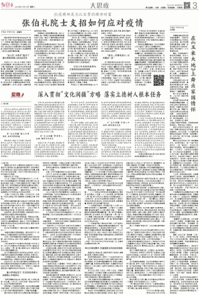 国务院联防联控机制综合组发布“新十条”后,天津大学空中课堂在线近日邀请了“人民英雄”国家荣誉称号获得者、中国工程院院士、天津中医药大学名誉校长张伯礼,就如何应对疫情问题为师生答疑解惑。他告诉年轻的大学生朋友,抗疫精神是一笔无比宝贵的精神财富。