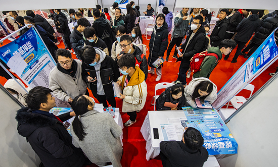 当日,西安建筑科技大学举行2023届毕业生春季就业洽谈会。200多家用人单位提供2万个就业岗位,涵盖了土木建筑、机电、信控、冶金等,吸引了2000多名学生入场应聘。袁景智/摄(新华社发)