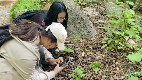 雨后的山林散发着青草、绿树、湿润的泥土混合的清香。北京一处山林中,小溪潺潺、泉水叮咚、树叶沙沙,一位户外徒步爱好者将她发现的植物拍照上传到“自然北京·发现”小程序上,并和身边来自北京林业大学的学生讨论辨认着植物的品种。