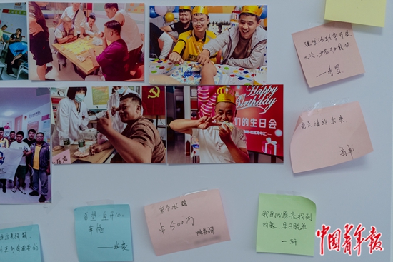 店里的活动区有一块白板,各类活动已经提前按照日期排好。骑手们可以在下班后来这里看电影,也可以在跑单之余享受免费的理发服务。来自五湖四海的骑手们通过每月一次的生日聚会彼此相识,有的年轻人在相亲活动中找到了爱情。“加油站”成立初期并不像现在这样热闹,常凯和另两位外卖骑手高丰、董婉秋一起,在村里挨家挨户敲门推广,因为过于热情,他们甚至曾被误认为是骗子。今年北京的夏天异常炎热,说起那段出门“地推”的经历,社工高丰很看得开,他觉得炎热的天气反而帮了忙,“店里有空调,还有提前冰好的西瓜,大家都爱来。”