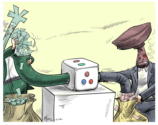 近日,湖南永州冷水滩区纪委监委收到网上举报,一名副处职级干部蒋某某涉赌。经过核查,举报的问题属实。11月4日,该区纪委监委决定对其进行立案审查。网上流传的视频中,5人围坐在一起赌博,桌上是一叠厚厚的百元大钞。(澎湃新闻11月6日)漫画:徐简