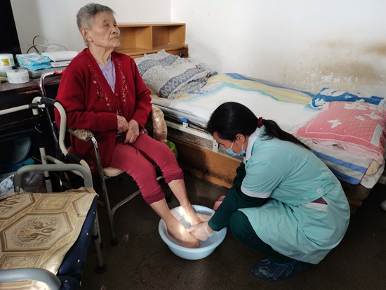 “阿姨,我来给您做护理啦!”11月的一天,养老护理员敬栓敏来到北京市石景山区古城街道的张秀荣家里。看到敬栓敏如约而至,93岁的张秀荣面露喜色,赶紧让女儿郝淑媛帮助自己从床上坐起来。“不着急,慢慢来。”敬栓敏小步上前,小心翼翼地搀扶张秀荣坐到床边的座椅上,麻利地为张秀荣测体温、洗脸洗脚、做肢体功能康复训练等个性化护理。