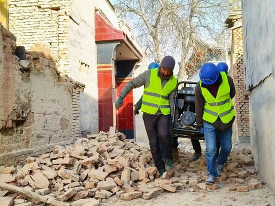 “天气太冷,冻得我活动都不灵活了。”19日上午11点左右,持续工作10个小时的孙朝辉告诉记者,他们在积石山县周围村落抢修时发现,多数村内的房屋墙体倒塌严重,到处是断壁残垣,维修车辆很难直达基站,他们需要抬着重达50公斤的发电机徒步前行,手冻僵了,“以前我们两个人就能提动的设备,现在需要4个人”。