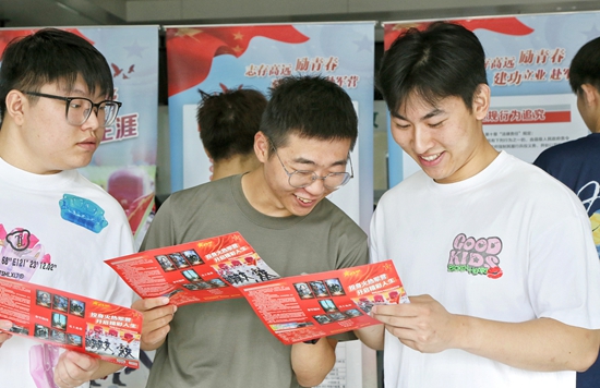 7月17日,江苏省海安市曲塘中心卫生院,当地适龄应征青年在学习征兵政策,进行征兵目测初检。周强/视觉中国