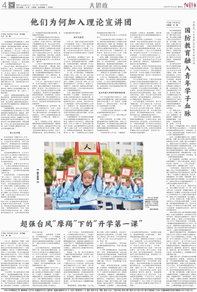 9月9日,海南师范大学迎来了2024级新生。李超觉得,以往大家通常都将新生军训作为“开学第一课”,而这场“抗风救灾”的经历让师生们变成了“开学第一课”的亲历者和参与者。他说:“学生们更加明白‘敢于去做、敢于去承担’的道理。同时,他们也感受到国家、学校和老师们以身作则的榜样力量,更加坚定了自己未来的奋斗方向。”