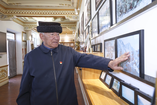 9月中下旬,记者跟随“铸牢共同体 中华一家亲”采访团,从喀什出发,沿着314国道乘车近6个小时,到达塔县提孜那甫守边护边爱国教育馆,采访“人民卫士”巴依卡·凯力迪别克,听他讲述一家三代为国守边护边、在“生命禁区”红其拉甫为边防官兵义务向导的故事。
